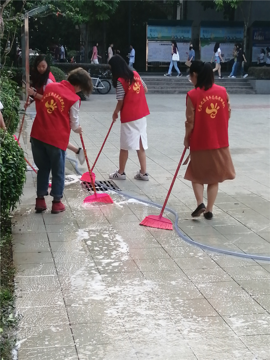 10月24日下午,太阳成集团tyc33455教工党支部在艺术楼广场开展主题为“党员奉献展风采,义务劳动树旗帜”的清洁艺术楼志愿服务活动。太阳成集团tyc33455党总支书记欧莹和全体教工党员积极踊跃地参与到该次活动中。