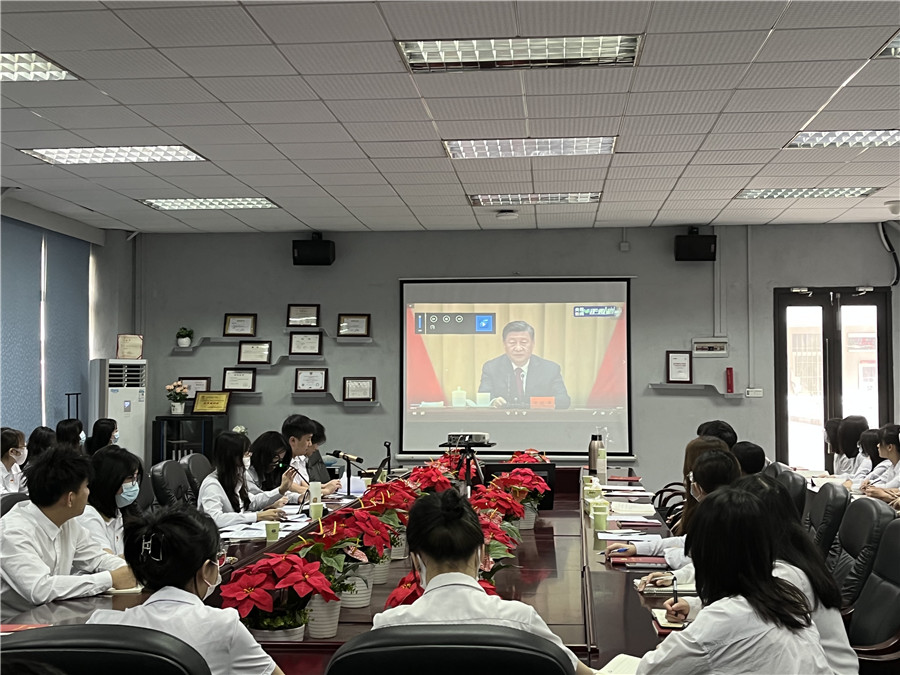 接着,会议议程进入学习贯彻习近平总书记在庆祝中国共产主义青年团成立100周年大会上重要讲话精神,在讲话视频的播放中,大家一起跟随习近平总书记回顾了共青团坚定不移听党话、跟党走的青春历程,充分肯定了共青团作出的重要贡献,在此次视频教育中深刻阐明了共青团和青年工作的历史经验,对做好新时代共青团工作提出明确要求,为做好新时代青年和共青团工作指明了前进方向、提供了根本遵循。