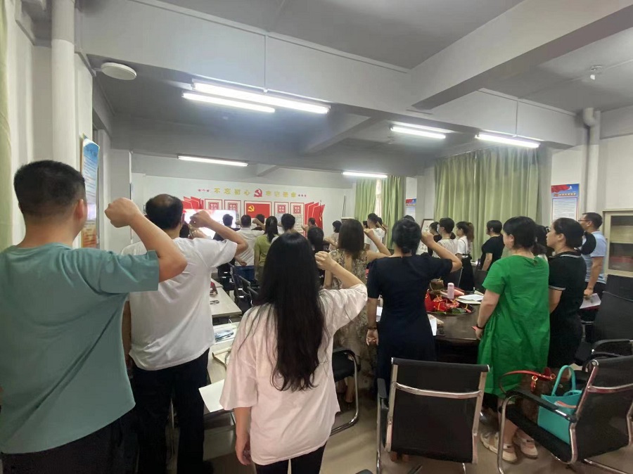 最后,吴福珍带领全体党员重温入党誓词。全体党员庄严地举起右拳,目光坚定、神情肃穆,铿锵有力的宣誓声表达着对党做出的庄严承诺。