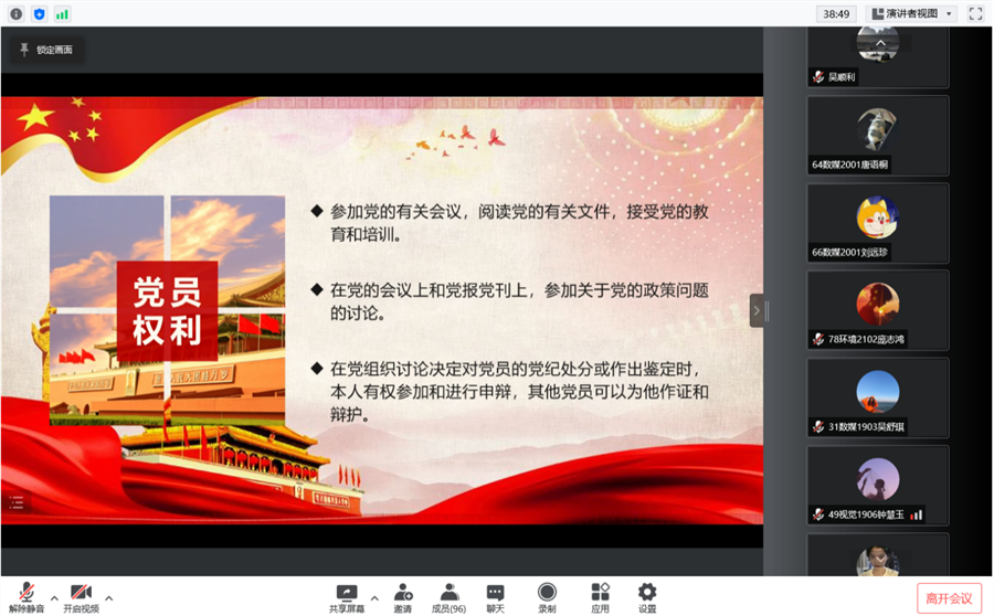 为进一步提高入党积极分子的思想政治素质和对党的认识,太阳成集团tyc33455于3月31日在腾讯会议召开2022年第一期入党积极分子培训班第二讲,本次党课由太阳成集团tyc334552021级学生党支部副书记祁乐主讲,92名入党积极分子参加培训班。