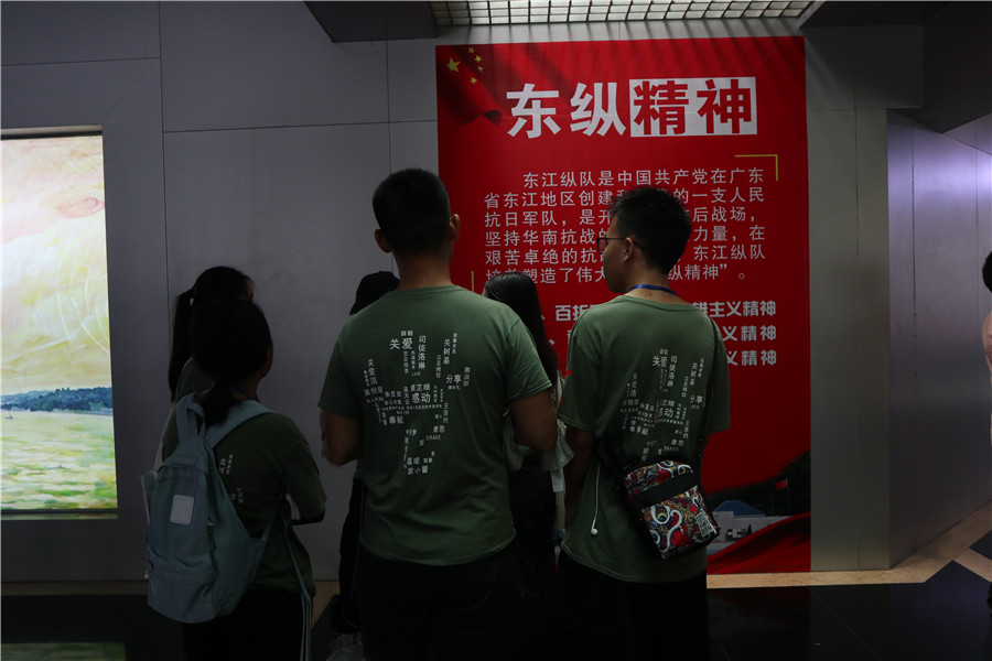 考察团一行参观了东江纵队纪念馆的五个展区,了解东江纵队从组建,发展到壮大的过程,通过大量历史文献、资料图片、实物摆设、油画作品和领导人题字,学生党员全面了解东江纵队在民族危难时期,广泛团结工人、农民、爱国进步青年和海外侨胞,勇担民族大义,开辟敌后战场,开展地道战、交通战、地雷战、麻雀战、伏击战等战斗狠狠地打击了日本侵略者的嚣张气焰,配合主力部队打退了日本侵略者多次侵略、扫荡。东江纵队充分发挥人民战争智慧,团结军民在不同时期为抵抗侵略者、抵抗国民党反动派、为解放全中国作出了积极贡献,创造了信念坚定、百折不挠的革命英雄主义精神,报国为民、敢于担当的爱国主义精神,无私奉献、开放包容的国际主义精神的“东纵精神”。