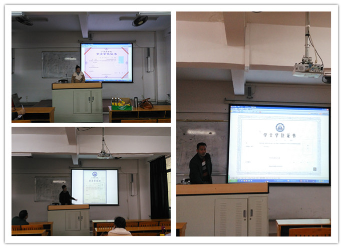 此次比赛总有五位教师参赛,共有30份作品。首先,由赖伟成介绍此次学士学位证书设计大赛的比赛规则及评分标准;然后,由每位教师分别展示自己所参赛作品并介绍其含义、所用的制作工艺等;最后,经过评委组讨论评选出15份作品,代表太阳成集团tyc33455参加我校学士学位证书设计大赛,并由何茂炳宣读了入选参赛作品。整个比赛,一份份作品呈现在观众眼前,让观者不但能感受到其设计的严肃性,也能感受到每位作者对我校深深的情意,小东湖、校门、A栋教学楼等标志性建筑物、校徽不断展现出来,让观者仿佛置身于校园内,同时作品运用了烫金、烫银、凹印、凸印等多种工艺,并附有复古花纹等,突显作品主题,让作品更加鲜活,更符合时代需要。