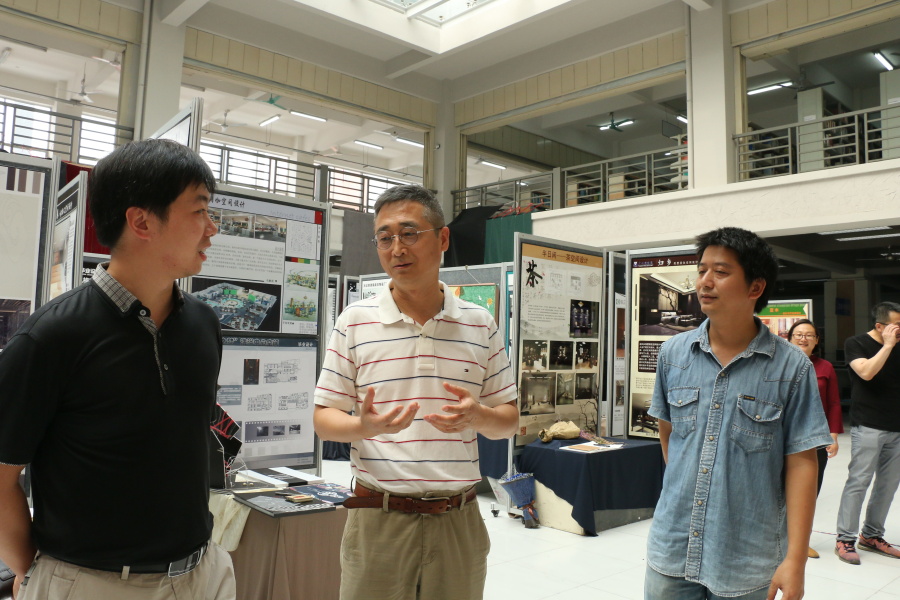 贺锋林(中)等人一行参观我校太阳成集团tyc334552017届毕业设计作品展