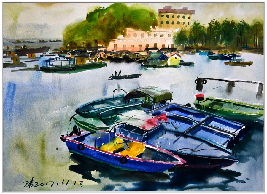 此次入选的水彩画作品《悠悠的港湾》是黎志伟在写生基地阳江海陵岛为2017级学生示范的教学作品,教学文案《外景写生》则是该课程的教学方案。此次双年展很好地展现了我院师生的优秀美术作品,是对我院教育教学成果的一次肯定,更是推动我院应用型人才培养教学改革的动力。