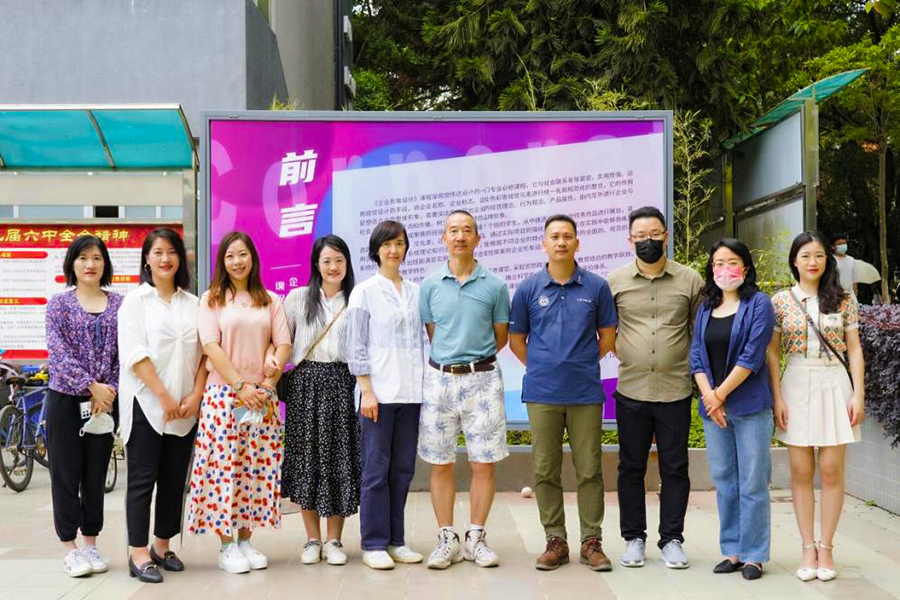 开幕致辞完毕,主持人宣布企业形象设计课程教学成果展开幕,学生和专任教师相继就现场的作品进行交流。最后全体教师合影纪念。