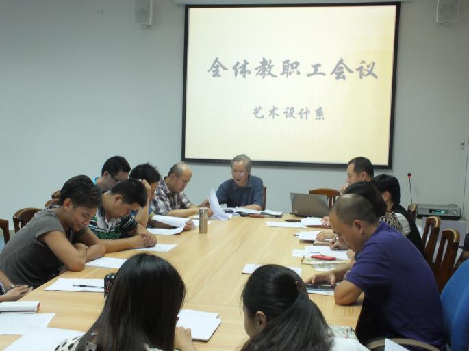 9月11日,艺术设计系在第二行政楼214会议室展开学期初全体职工会议,部署新学期的重点工作,进一步研讨2014级人才培养方案。艺术设计系主任林木森教授,副主任谭杉,党总支书记欧莹以及全体教职员工均参加了本次会议。会议由林主任主持并讲话。