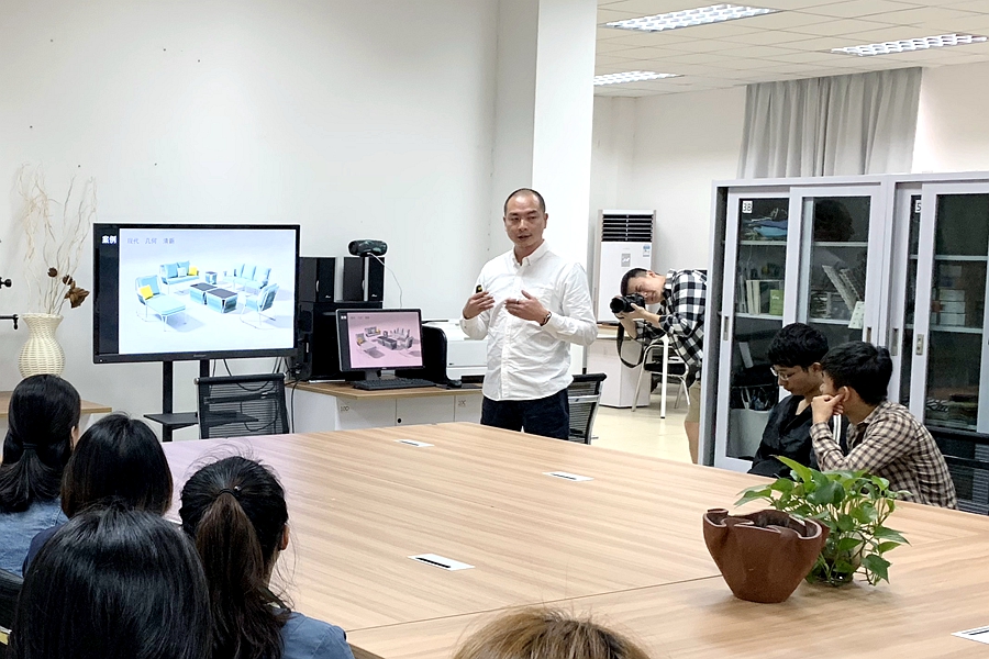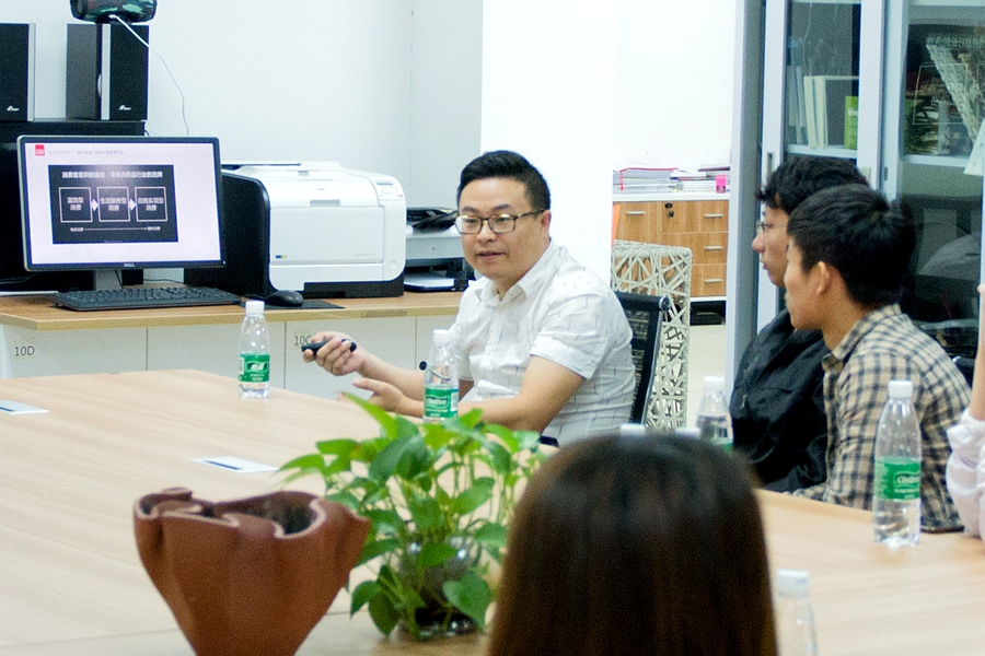 兰小虎为在座师生进行了企业文化介绍,分析了当今市场的消费需求。兰小虎强调,未来的消费市场将全面升级,年轻人更愿意为个人的自我满足和自我实现买单。所以产品设计的市场也将不再是单一的功能实现或者造型设计,更应该从潮流、文化等方面引领消费。