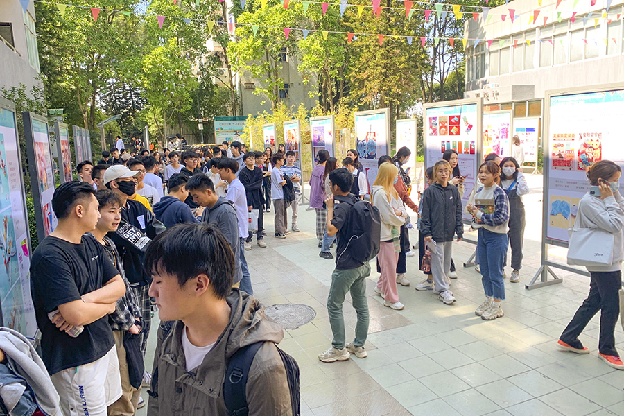 本次展出的作品中有单张的平面海报、公众号推文版式设计、也有立体的包装版式设计和多页的书籍画册版式设计,每件作品都凝结了任课老师和同学们的真诚与认真、付出与努力,均展现了同学们在课程中的学习与成长、积累与成果,展示出同学们对于社会热点的关注,对于人类日常生活的歌颂,对于历史事件的反思,对于当代文化的积极态度。作品中不乏学校、企业、市场三者互动的作品,其中多项作品被企业采用做商业应用产出一定的经济价值,也有100多项作品在国家级、省级艺术设计大赛中获奖,极大地提升了同学们的实践能力。