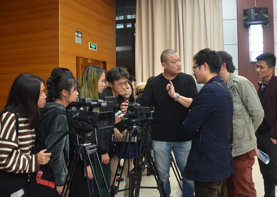 讲座中,张铁军对影像拍摄进行了专业的理论讲解。他总结影像拍摄的秘诀“但手熟尔,但体勤尔,但思活尔,但兢业尔”16字警言令人深思。他指出,在这个新媒体时代,万物随“新”而变,作为新媒体人,要想做到不落后、不被社会所淘汰,要紧跟时代潮流,善于运用新技术、新器材进行拍摄以及后期处理,掌握拍摄的时效性与真实感至关重要。对于摄影的新技术,张铁军主要进行了主流4K技术与实用性的解析。4K是一种新兴的数字电影以及数字内容的解析度标准,能够达到高清分辨率的4倍,清晰度远超IMAX数字版,使平面拍摄体现出卓越的立体感,给人以震撼的真实感,在观影时能给观众带来更佳的视觉享受。张铁军分享了自己的拍摄经验以及拍摄作品,展示了他为呼和浩特、平遥古城、北京等众多城市所拍摄的宣传片以及一些有趣的影视作品,让学生通过影片深入了解新时代新技术新形式下的摄影技巧,通过实例讲述了如何打造“高光有层次,暗部有细节”的拍摄作品。讲座最后,张铁军与师生积极互动、答疑解惑,在座老师及学生积极发言、踊跃提问,现场气氛十分热烈。讲座结束后,大家热情高涨、气氛丝毫未减,纷纷上前体验摄影拍摄的高新设备,并与张铁军交流心得、合影留念。