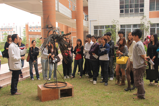 华南师范大学增城学院艺术设计系2011年雕塑作品展于4月7日在C105门口空地展出,展出的雕塑作品风格各异,雕塑语言多种多样,运用各种各样的材质,从不同角度表现了增院学子的创作潜力,设计风格独具一面。