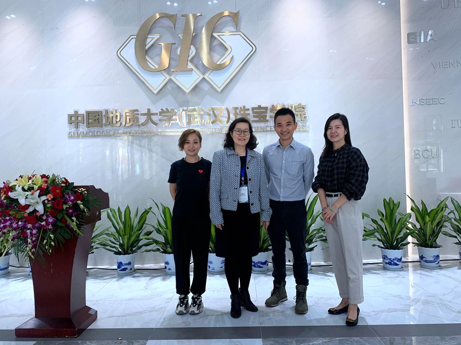会后,罗冠章及胥璟赴中国地质大学(武汉)珠宝学院进行参观,与中国地质大学(武汉)珠宝学院首饰设计专业学科带头人、博士生导师张荣红教授做了短暂的沟通与交流,并观摩了台湾金雕大师吴卿个人作品展及全国首饰设计高校联展。