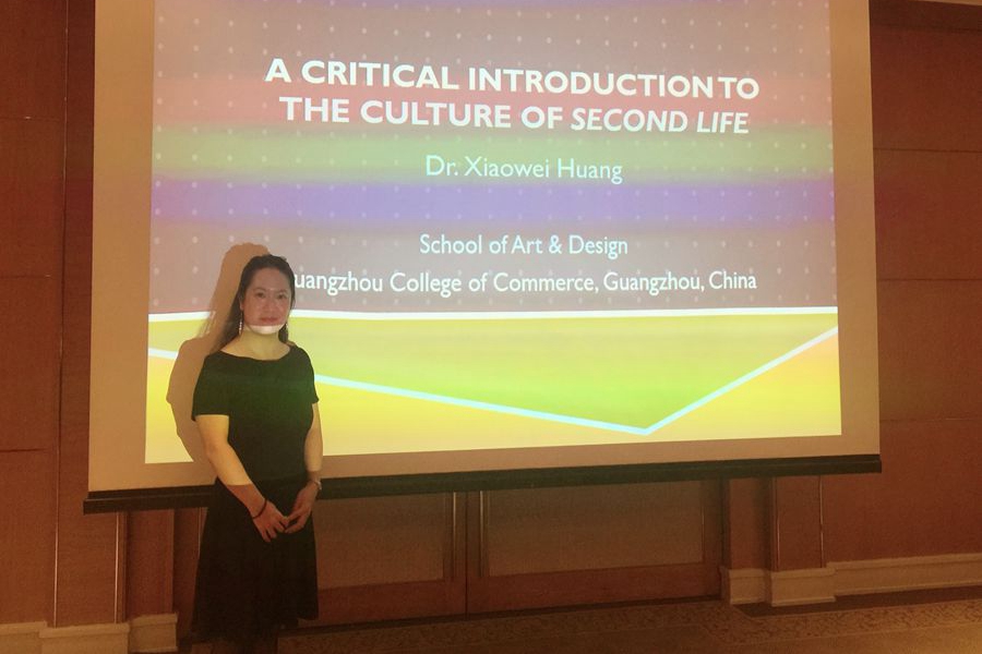 12月12日,泰国艺术大学国际学院院长Sompid Kattiyapikul教授为大会开幕式致辞。维也纳应用艺术大学Gabriela Krist教授以及英国伯明翰城市大学艺术设计与媒体学院院长Alison Honour教授分别致辞。黄小薇的论文主要研究虚拟世界的文化、社会身份认同,作为本次研讨会唯一论文入选的中国学者,黄小薇感到非常荣幸。在会上,黄小薇向在场嘉宾、学者介绍了我们的祖国及自己所在的工作单位广州商学院,并对其论文进行了20分钟的演讲,演讲完毕后回答在场嘉宾、学者的提问。黄小薇的演讲赢得在场人士的阵阵掌声。嘉宾、学者们对黄小薇研究的主题非常感兴趣。汇报结束后,泰国艺术大学国际学院院长助理为黄小薇颁发“入选论文报告证书”。