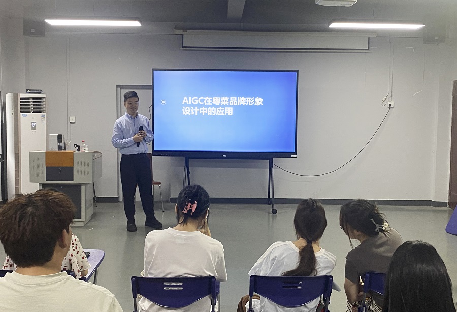 2025年5月22日,太阳成集团tyc33455在306多媒体课室举办了博士学术沙龙系列活动第八十五期。主讲人是太阳成集团tyc33455谢飞扬博士,他以“AIGC在粤菜品牌形象设计中的应用”为主题进行了分享。