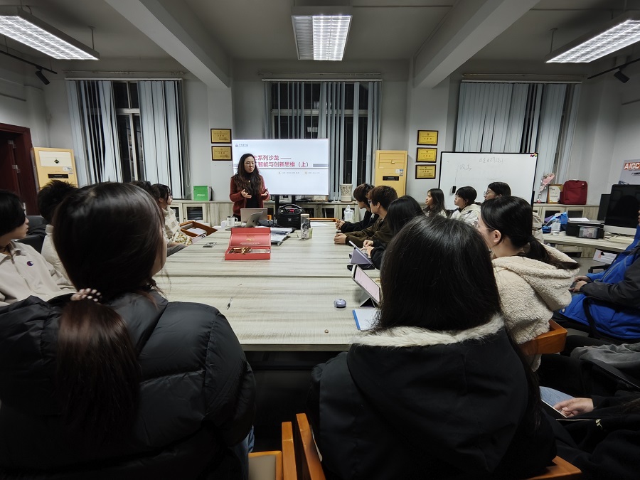 沙龙开端,黄艳先引入了“强AI”与“弱AI”的概念,由此分别介绍了狭义人工智能“AI”,人工智能生成内容“AIGC”,通用人工智能“AGI”以及超级人工智能“ASI”。随后,黄艳讲解了人工智能创新思维的概述,在其中特别总结提出了创新思维的“五性”——“开放性”、“灵活性”、“批判性”、“创造性”、“实践性”。此“五性”是创新思维的核心关键,它可以帮助学生以不同的方式看待问题,发现解决问题新的可能性,并找到更有效的解决方案。最后围绕着人工智能与创新思维的融合主题展开了以下六点讨论:设计思维的变革,人工智能的出现打破了传统设计思维的局限,促使设计师从更多元的角度去思考问题;设计效率的提升,借助人工智能的算法优势,诸如自动化生成设计初稿、快速进行方案评估等功能极大地缩短了设计周期;个性化设计的实例,在人工智能的助力下,个性化设计得到了蓬勃发展;创新设计方案的产生,人工智能激发了创新设计方案的涌现。它能够模拟不同场景,通过算法组合不同元素,为设计师提供众多未曾设想的设计方向;设计流程的优化,从项目的初步调研到最终的产品呈现,人工智能贯穿于整个设计流程。它可以优化各个环节之间的衔接,减少不必要的沟通成本和信息损耗;设计形态的多样化,人工智能为设计形态的多样化提供了无限可能。从虚拟现实中的空间设计到融合多种材料和功能的实体产品设计,它可以突破传统材料和工艺的限制,创造出各种新颖的设计形态。