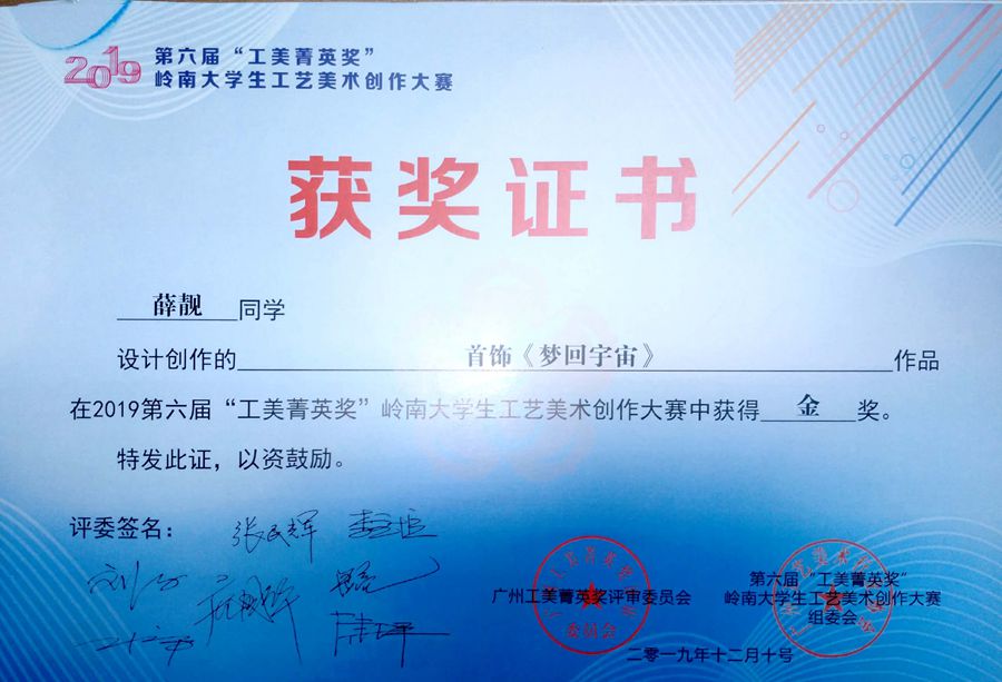 2019第六届“工美菁英奖”岭南大学生工艺美术创作大赛金奖