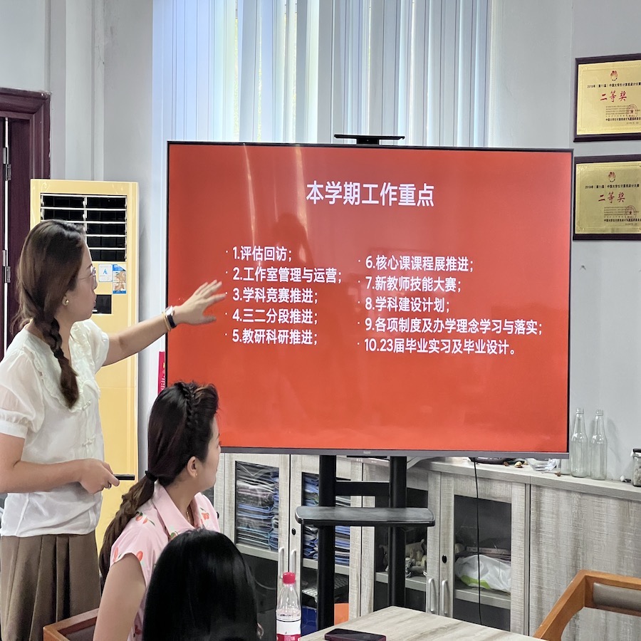根据学校及学院的的工作重点落实,本学期工作重点围绕评估回访、工作室管理与运营、学科竞赛、三二分段、教研科研、核心课课程展、新教师技能大赛、学科建设计划等方面。黄艳最后重点强调23届毕业实习及毕业设计的重要性,对2023届数字媒体专业毕业设计任务、评分标准以及成绩评定的具体内容进行了详细讲解。毕业设计、毕业实习及专业实践课程的进入哪个阶段及注意事项做了简要介绍。通过本次会议,教师们更加明确了工作方向,落实工作计划,为新学期工作的顺利展开奠定了基础。