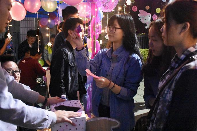 在趣味游园过程中,艺术团歌唱队带动气氛,现场很快活跃起来,吸引不少行人参与到活动。本次活动采用班级承办的方式,各班提出趣味摊位方案,由学生会审核筛选,最终评选出12个具有艺术设计专业特色的活动,包括“大家来找茬”、“调颜色,我最棒”、“你画我猜、你话我画”、“迷你高尔夫”、“蒙眼跨栏”、“我是复印机”等。女生节祝福墙,写满了男生对女生的祝福,女生们在也在愿望墙上写下了自己的新年愿望。同学们在游园的活动中,感受着节日的欢乐气氛。活动中特别设置了一个终极抽奖环节,所有女生均可参与抽奖,现场抽到37号者为活动终极幸运儿。
