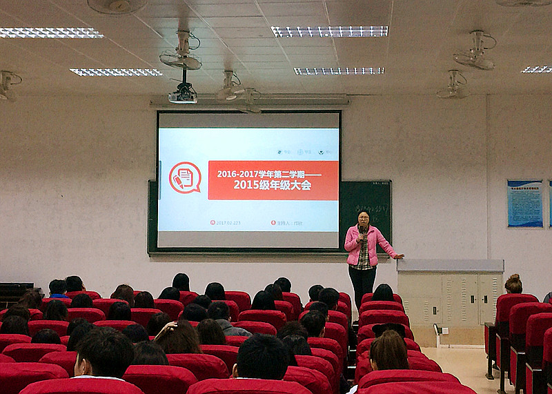 随后,她就2015级新学期的学习任务、主要活动、职业规划及安全问题4个方面做出详细的说明,并着重强调了“成绩与学分”的问题。希望同学们从上学期的经历中更加意识到学习的重要性,摆正学习态度、掌握学习方法、提高学习效率,积极参加活动和比赛锻炼实践能力,优秀的同学影响和带动班集体形成良好的学习氛围。通过上学期的多方面表现统计,各专业评选出一个“优秀班集体”,起到了示范作用。邝欣还邀请了3名上学期赴台交换生代表,与全体同学们分享了自己的学习心得与交流经验,展示了自己的学习成果。