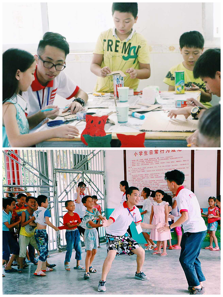 队员们说一切的付出都是心甘情愿的,来了就要全力以赴。通过这几天授课,各个年级的孩子们在乐于接受知识的同时,与队员们建立了深厚的友谊。今天各班开展了拓展活动,队员们和孩子们一起玩游戏,像老鹰抓小鸡、丢手绢,等小游戏都勾起了我们儿时快乐的记忆。