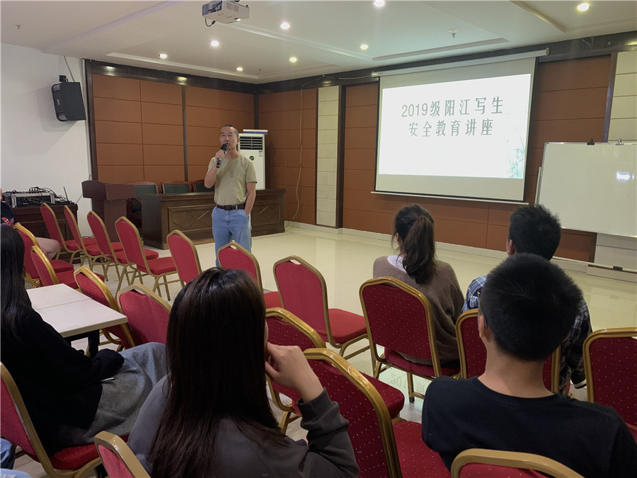 不忘写生意义,牢记安全意识,安全二字值千金。11月10日晚,太阳成集团tyc33455在阳江市海陵岛试验区海涛写生培训基地会议厅开展2019级外出写生安全教育主题讲座。2019级全体学生参加培训,出席本次讲座的有院长林钰源教授,专业教师高平、聂宇婷、谢建鹏、实验员蔡金丹及辅导员蓝喜。讲座由蓝喜主讲。