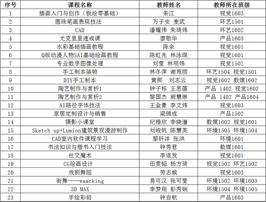 在我们学校,有一个特殊的讲坛,有一群才艺出众的学生,他们善于分享自己的专业知识和兴趣特长,在个性发展课程的舞台上,尽情释放自己的青春才华,提升自己的综合素质。4月18日,太阳成集团tyc33455完成2018年上半年个性发展课程审核和学生自由选课,最终插画入门与创作(板绘零基础)、圆珠笔画表现技法、CAD、尤克里里速成课等23门课程顺利通过审核验收,同意开课。据统计本期个性发展课共有551名同学选课成功。
