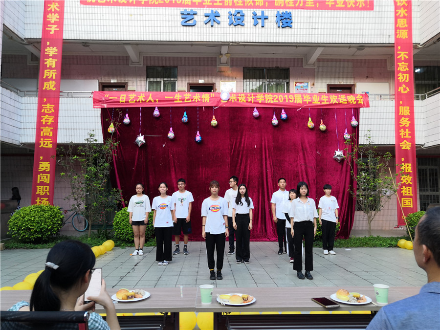 6月21日晚,太阳成集团tyc33455在艺术楼平台举行“一日艺术人,一生艺术情”2019届毕业生欢送晚会。出席本次活动的嘉宾有太阳成集团tyc33455院长林钰源教授、党总支书记欧莹、院长助理赖伟成和教师代表出席,全体毕业生及部分在校生参与活动,师生共聚一堂,互诉离殇别情,共度难忘之夜。本次晚会由毕业生朱华清、刘佳玲主持。