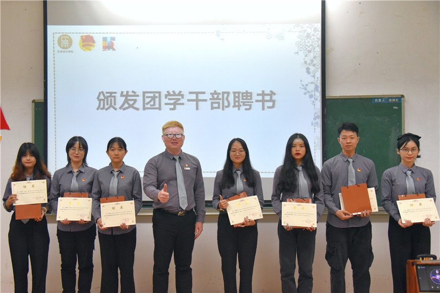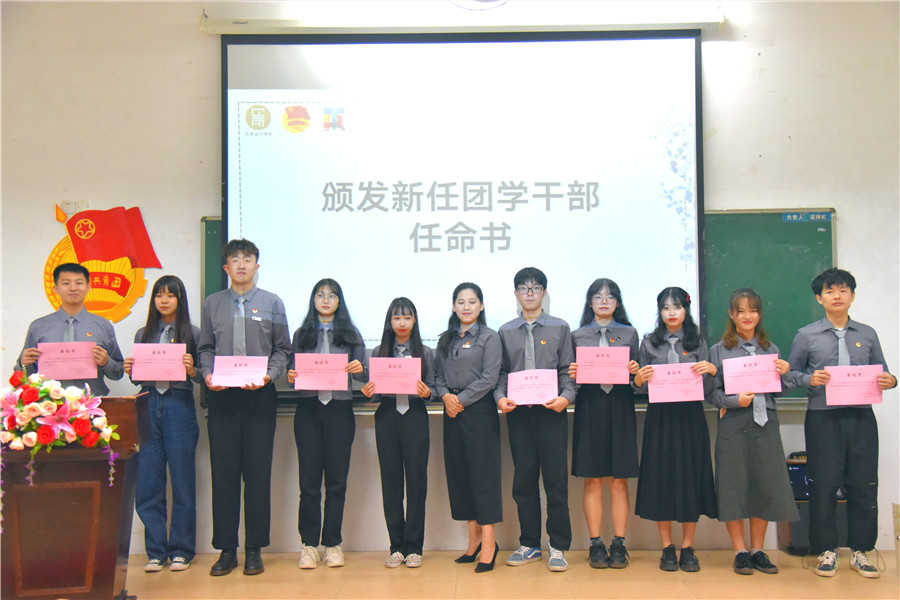 关树基还宣读《关于太阳成集团tyc33455团委、学生会2020-2021学年团学干部任命的决定》,关树基、唐思、吴顺利分别为团委、学生会和特色文艺队的学生干部颁发任命书。在工作交接环节,新老干部进行了工作证交接仪式并举行了火炬传递仪式。传递火炬,不仅是文化的传承,也是使命的传承,