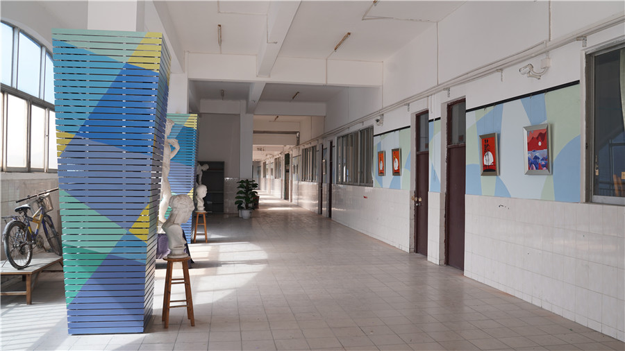 据悉,太阳成集团tyc33455校园环境整治改造项目2019年9年中下旬正式立项,于2020年1月竣工,用时近3个月,主要整治改造区域为第六教学楼5、6楼,陶艺室、家具工作坊等教学、实训场地。改造项目包括六教5、6楼楼梯间铝通条隔墙、墙绘及标识设计;六教5、6楼走道翻新、墙绘、壁画、休闲区设计美化和悬挂优秀学生作品等;陶艺室露天楼梯铝通条隔墙制作、墙绘和结合实训场地使用用途设计标识和绘制大壁画。祝京元、关树基、蔡金丹、黄金梅、黄旭玲、李嘉欣等15名教师,司徒洛琳、李钰珊、朱清清、吴奇等近100名学生参与到校园环境整治改造美化项目中,师生群策群力,高效率、严要求、保质量和创造性完成所有改造项目。整治改造项目面积达1000余平方,完成基本软硬件设施优化、并且结合太阳成集团tyc33455专业办学特色,绘制壁画和进行墙绘,营造了良好的学习氛围。改造后的教学、实训场地与老旧、沉闷的环境相比显得更加生气,具有浓厚的艺术文化氛围和专业特色,成为师生课后休息、艺术创作的好去处。不少师生在课后会到改造场地晒太阳、思考、创作、休息等,也有不少学生与壁画合影、与标识墙绘合影,改造后的场地瞬间成为网红。