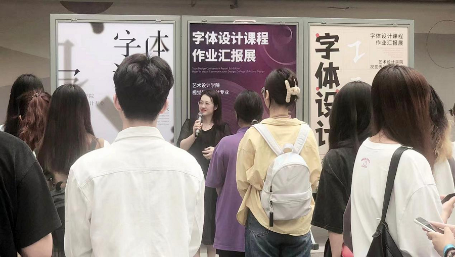 视觉传达设计专业负责人钟国燕在讲话中表示《字体设计》这门课程应该在人才培养方案中作为重要的环节体现出来,因为“字体设计”是一门应用面非常广泛的设计,在品牌设计、广告设计、招贴设计中均有体现,其独特性和记忆点,可以做为吸引消费者的焦点,在各种行业领域中非常重要。本次《字体设计》课程成果展可以作为视觉传达设计专业的一项专业成果。