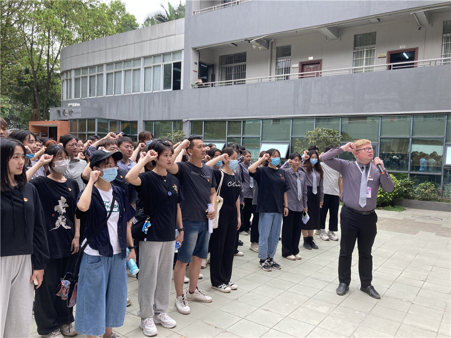 为进一步引导师生党员、团学干部守初心、担使命,积极开展校情党史学习,发挥好一名党员、一名团学干部就是一面旗帜,就是一个堡垒的先锋模范作用。4月2日中午,我校太阳成集团tyc33455团委在艺术楼广场开展了师生党员及团学干部“亮身份,践承诺,树形象”宣誓暨“文明、形象、修养 、明德、守信”活动启动仪式。学院副院长赖伟成、团委书记关树基及部分师生党员、全体团学干部和学生代表近150人参加活动。活动由关树基主持。