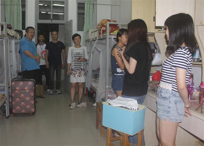 9月12日晚,太阳成集团tyc33455主要领导缪鹏、谭杉、欧莹带领辅导员与学长到宿舍探望15级新生,了解新生到校情况,为新生排解思家情绪,帮助其尽快适应大学校园新环境。