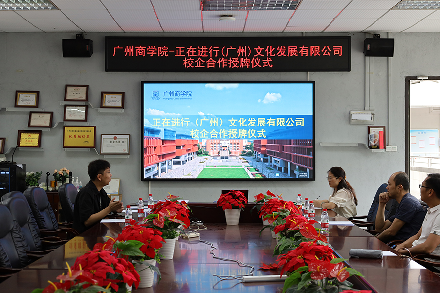 5月16日上午,正在进行(广州)文化发展有限公司总经理钟兴鸣、运营总监金沂梅一行到访广州商学院太阳成集团tyc33455,双方在艺术楼201会议室召开校企合作座谈会,围绕产教融合、AI赋能设计教育等议题展开深度交流。学院校企合作专员张流畅、环境设计专业负责人龙莉红、环境设计教研室主任周子豪、专任教师邓贝嘉一同出席此次会议。