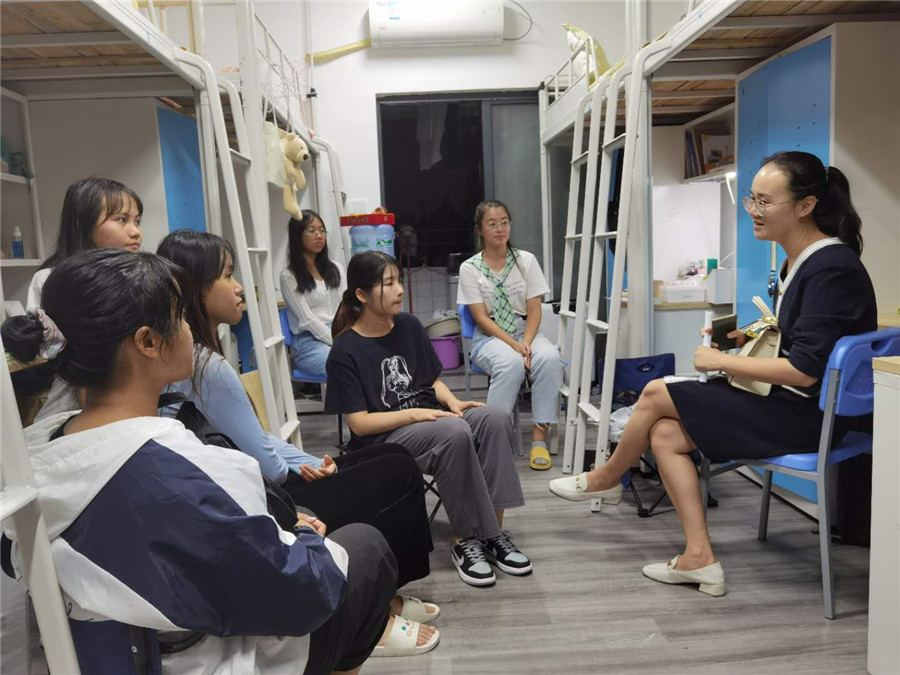 随后,各班班长与“结对子”导师进行见面交谈,并一起前往负责班级学生所在宿舍,与学生建立微信群并进行亲切交流。