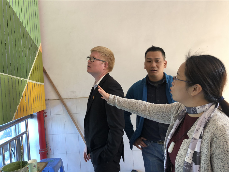 欧洁梅副校长现场指导墙绘项目