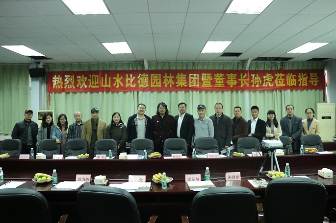 缪鹏代表学院对孙虎一行表示欢迎并介绍了我校我院的发展概况。孙虎对学校的热情款待和重视表示感谢并介绍了山水比德园林集团的发展概况。