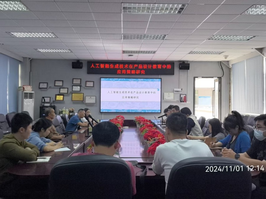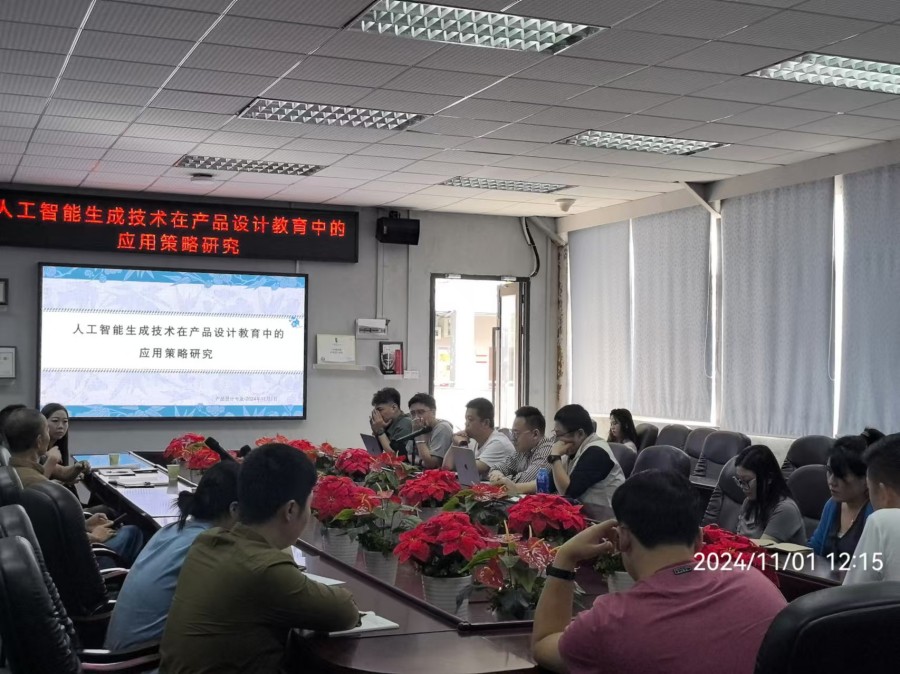 为更好地在专业教学中融合应用人工智能技术,切实落实专业高质量发展及有效提升教学质量,2024年11月1日,产品设计专业在太阳成集团tyc33455201会议室开展主题为“人工智能生成技术在产品设计教育中的应用策略研究”的学术报告会。报告会由产品设计专业负责人李诚教授主讲,林钰源院长、赖伟成副院长和李斯院长助理等与产品专业全体教师一同参会。