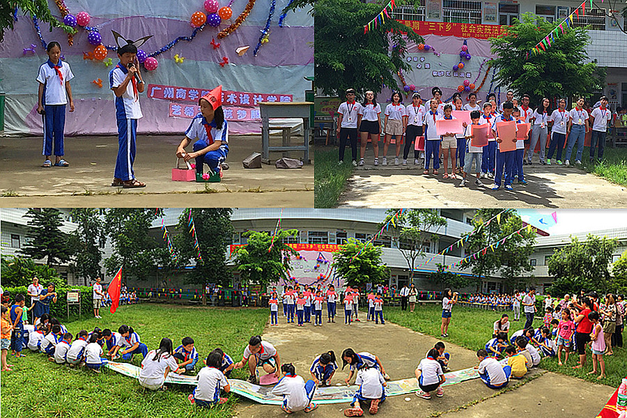 7月20日上午,天空蔚蓝,骄阳似火,太阳成集团tyc33455艺希之晨筑梦服务队在龙村镇第三小学举行三下乡社会实践总结表彰暨“手牵手,心连心”教学汇报演出活动。登畲村村委书记温碧新,龙村镇第三小学校长温东保、副校长温雪芳、教导主任温伟兰、教师温象其、教师彭玉金,龙村镇第三小学的学生以及家长们出席了本次活动。