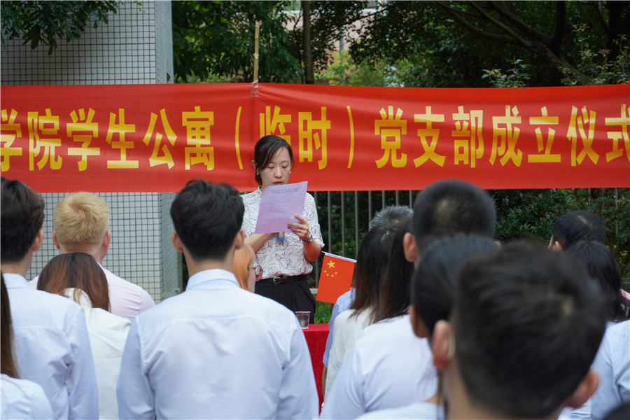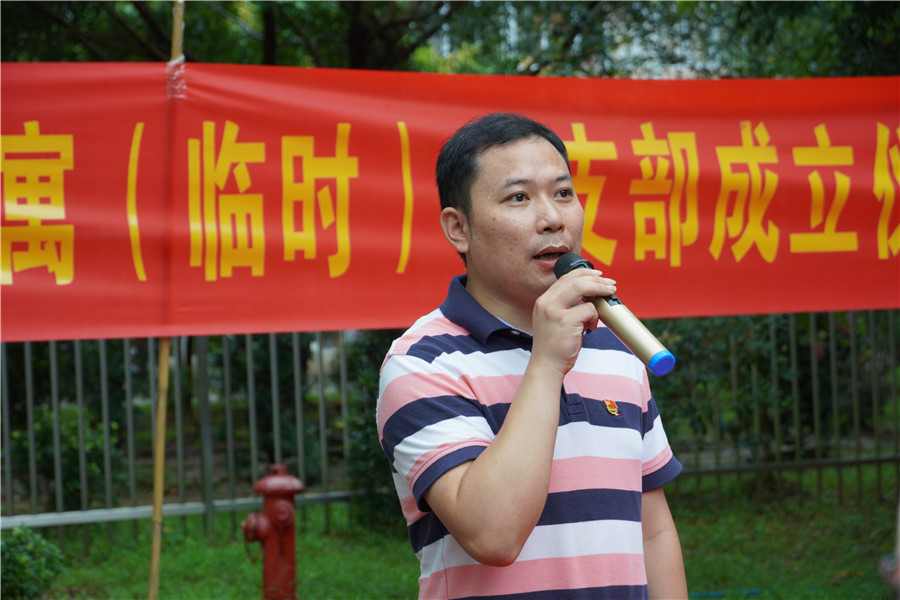 6月18日中午,太阳成集团tyc33455党总支在28栋学生公寓空地举行学生公寓(临时)党支部成立仪式暨学生党员片区管理启动仪式,开启党建创新模式的新探索。学校党委委员、学生处长何柏略,学校党委办公室副主任刘永钦,太阳成集团tyc33455党总支书记欧莹,辅导员关树基、姚安贤、邝欣、唐思出席仪式。参加仪式的还有非毕业班党员、2019年第一期二级党校全体学员。仪式由欧莹主持。