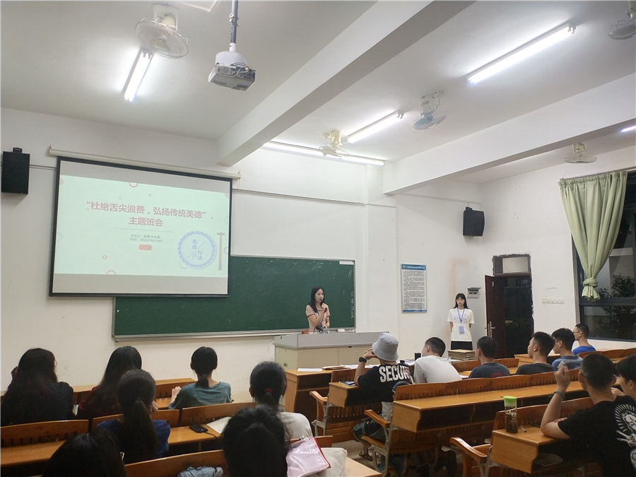 辅导员以诗句“谁知盘中餐、粒粒皆辛苦”引起了班会话题。蓝喜讲道习近平总书记一直高度重视粮食安全和提倡“厉行节约、反对浪费”的社会风尚,多次强调要制止餐饮浪费行为。目前我们部分学生节俭意识缺乏的问题,因此,大学生响应国家号召,培养勤俭节约良好美德的需求尤为迫切。