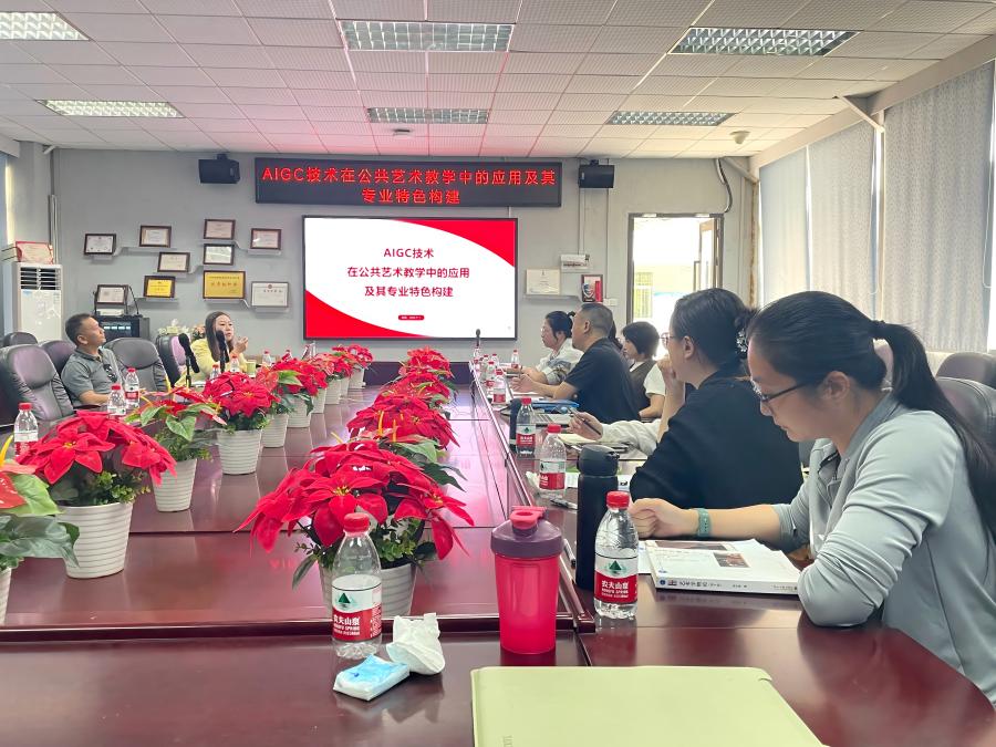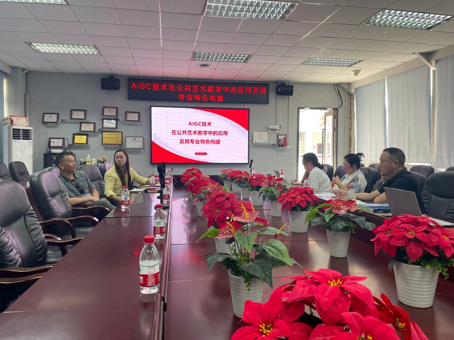 近日,我校公共艺术教研室成功举办了一场题为《AIGC在公共艺术教学中的应用及其专业特色构建》的专题讲座。此次讲座由公共艺术专业负责人吴福珍副教授主讲,太阳成集团tyc33455院长林钰源、副院长赖伟成、院长助理李斯以及公共艺术教研室全体教师共同出席。