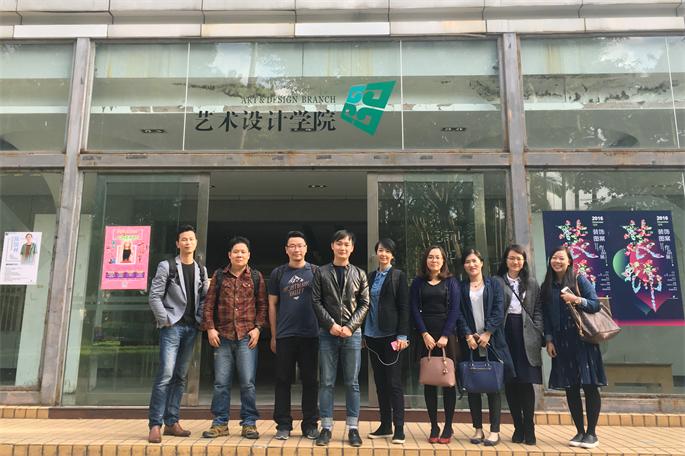 12月7日,广州商学院视觉传达教研室联合数字媒体艺术教研室赴广东轻工职业技术学院开展专业建设调研活动。此次调研以“艺术设计专业的教学与实践”为主题,对广东轻工职业技术学院的课程设置、实践课程开展、工作室实践工作开展、教学成果进行参观、学习与交流。视觉传达教研室主任谢建鹏,数字媒体艺术教研室主任黄艳,视觉专业带头人黄明珊,专业教师罗靖、钟国燕、李斯、陈雁峰、麦国森等一行8人参加了本次活动。