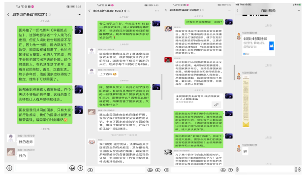 4月15日全天,太阳成集团tyc33455参加网络授课的23名教师,参与网课学习的1053名学生体验了国家安全教育进课堂。全体师生通过线上线下方式参与“全民国家安全教育日”系列活动。师生通过阅读太阳成集团tyc33455公众号关于国家安全教育的推文、阅读国家安全教育法律法规、观看千万学生同上一堂国家安全教育课、参与国家安全知识在线问答、讨论国家安全与幸福生活联系话题等加深认识,接受教育,强化国家安全意识。