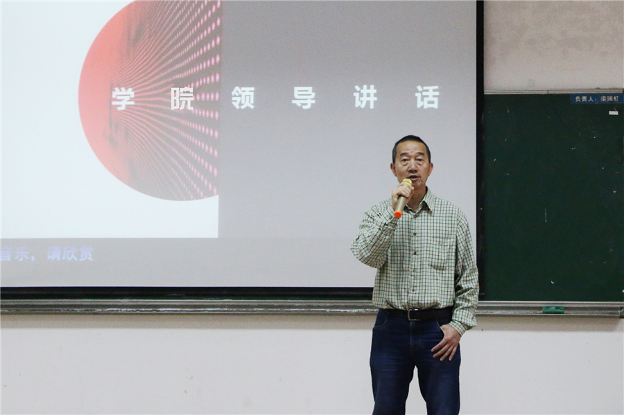 林钰源在颁奖典礼讲话,他对海科公司一行的到来表示欢迎,对海科公司给我院专业建设和校企融合带来的帮助和支持表示衷心的感谢。他讲到此次“海科空气净化器”竞赛让同学们充分参与到企业的真实项目设计,有利于同学们进一步了解企业、了解市场,把理想设计和实际项目结合,对所学知识进行充分的检验,这与我校培养高素质应用型人才的目标完全相符。他还在讲话中给同学们提了几点希望:一、不要虚题虚做,要学会虚题实做,实题实做,不要纸上谈兵,要有真才实学;二、通过各种比赛、竞技和专业学习提升自己的设计能力,努力培养自己的一手绝活,把自己打造成“工匠”、“大匠”甚至百年“巨匠”;三、要做到设计充分满足市场需求、客户需求,设计的产品更要满足人民对美好生活的向往;四、要时常思考什么是设计、什么是工艺,如何推广你的产品和设计。他还借用前英国首相撒切尔夫人“英国没有好的设计,英国工厂将失去竞争力”来勉励学生要时刻保持创新精神,心怀民族工业发展,做一流设计师。
