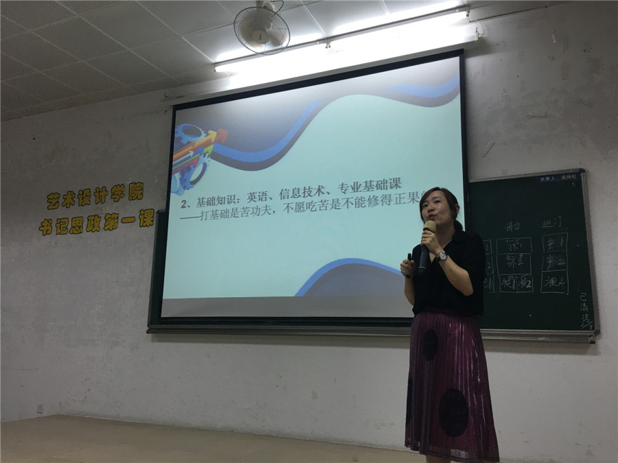 欧莹以明确大学四年规划为题给新生讲解了从高中到大学的转变需合理的规划。她结合自身大学学习经历勉励新生明确自己的学习标目,以终为始,并与处于萌新阶段的同学进行交流,教授新生学会如何避免大学的迷茫,提醒新生做到以下几点:一是自修之道:从举一反三到无师自通;二是打好基础知识:英语、信息技术、专业基础课;三是实践贯通;“做过的才真正明白”;四是培养兴趣:开阔视野,立定志向,做到“艺术设计+”;五是积极主动:果断负责,创造机遇;六是掌控时间:事分轻重缓急;七是为人处事:培养友情,参加群体。