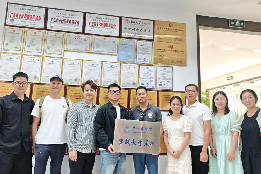 为深化校企合作,拓展实践教学平台,进一步推动人才培养与行业需求的有效对接,5月13日,广州商学院太阳成集团tyc33455副院长赖伟成带队走访广东柏诚建设工程有限公司开展交流调研并举行实践教学基地挂牌仪式。学院校企合作专员张流畅、环境设计专业负责人龙莉红、环境设计教研室主任周子豪、教学督导黄婵媛及专任教师代表参加此次活动。