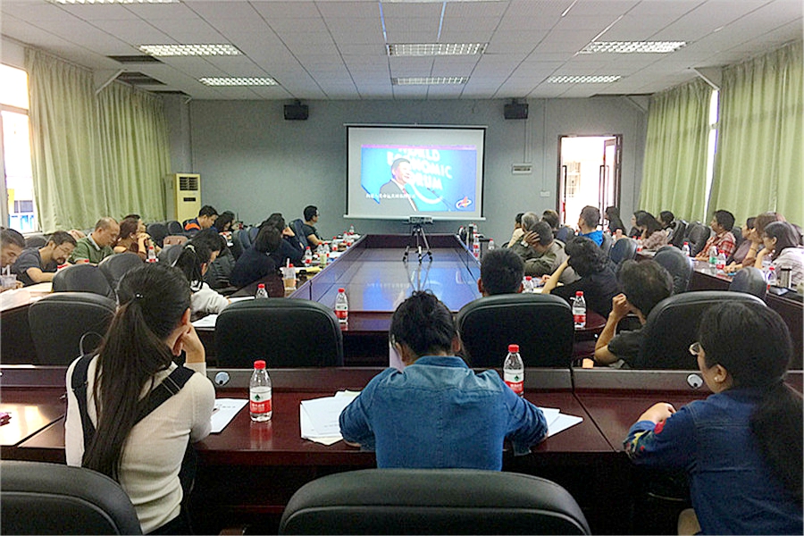 会上,全体教工观看了十九大专题视频《领航》,共同回顾十八大以来党和国家事业发生的历史性变革,取得的历史性成就,增强中国自信。欧莹向全体教工传达了10月30日省教育厅厅长景李虎在全省教育系统传达学习贯彻党的十九大精神视频会议上《高举旗帜、不忘初心、砥砺奋进,全面推进全省教育系统党的建设和教育事业改革发展迈上新征程》报告的主要内容,号召大家学习宣传贯彻十九大精神,要在研读原文的基础上认真思考十九大报告提出的新思想、新论断、新提法、新举措的历史背景、思想精髓与核心要义,真正做到学深悟透、学通弄懂;用十九大精神武装头脑、统一思想、指导工作实践。同时,教工党支部书记伍峙霖要求教工党员带头学习,先学一步、学深一步,在全体师生中起到表率作用。全体教工结合学习党的十九大报告体会,积极发表感想。大家一致认为,十九大报告提出了一系列新论断、新目标和新要求,习近平同志用“极不平凡”一词高度概括了我国在政治、经济、文化、社会、国防、科技、外交、党内建设等方面的重大成就,并在报告中多次提到了青年教师工作、高校建设、创新创业等与高等教育息息相关的话题,让大家感受到了党和国家对教育事业的殷切关怀,倍感振奋。