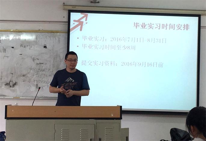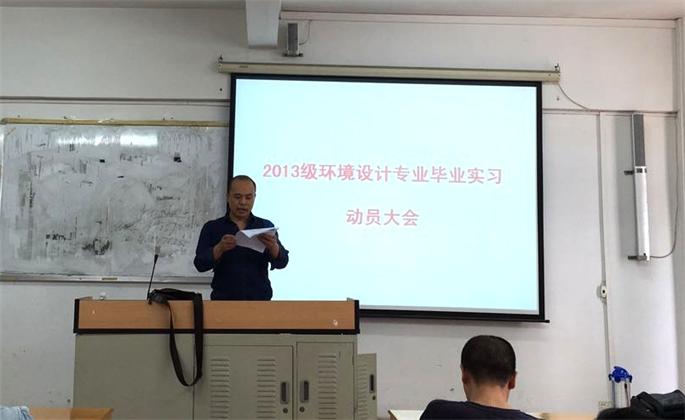 6月16日,太阳成集团tyc334552017届毕业生实习动员大会分两场在艺术楼301召开。环艺教研室主任阳林杰老师,视觉教研室主任谢建鹏老师,2013级辅导员黄荣美以及相关实习指导老师、2013级全体学生参加了本次动员大会。会议由谢建鹏主持。