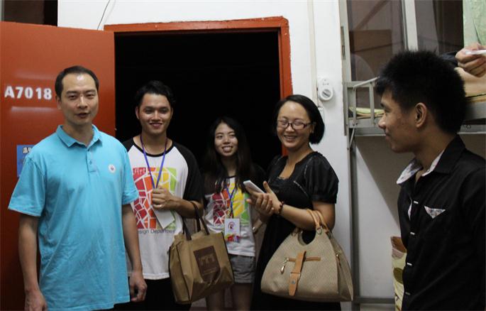 9月13日晚,艺术设计系主任林木森、副主任谭杉、党总支书记欧莹带领各年级辅导员到宿舍探望新生,了解新生到校情况,为新生排解思家情绪,帮助其尽快适应大学校园新环境。