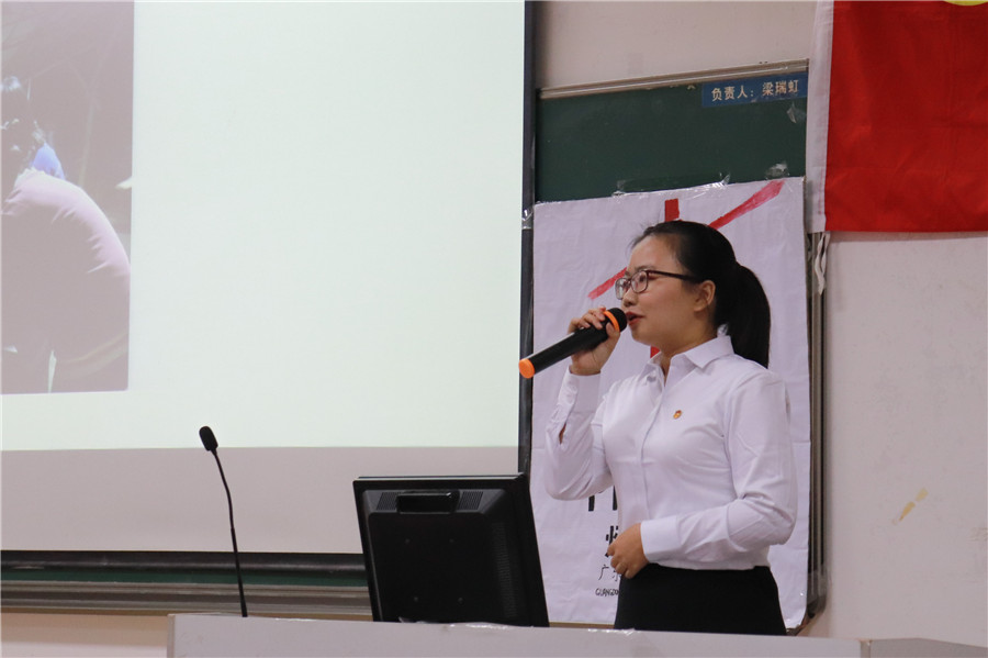 随后由获得我院2018年“活力在基层”主题团日设计大赛第一名的基层团支部——数媒1701班团支部上台分享支部活动开展情况。团支书蔡洪妍以《学习习近平总书记7·2谈话精神》为主题,讲述团支部的学习情况,讲述的过程中还穿插了团支部以男生节为目的增强团支部凝聚力的小趣事,并贴合主题地提出了在开展团组织生活中要做到理论与实践结合,教育引导与趣味参与相结合的双重性。