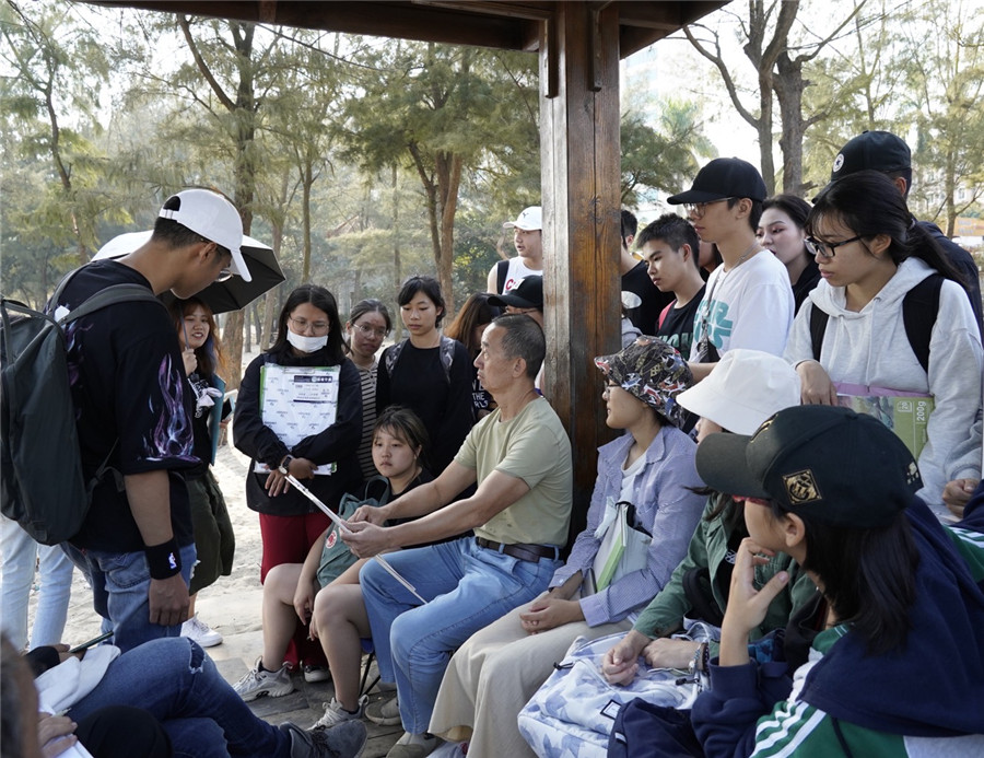 写生前,任课老师进行素描的示范及详细的讲解,根据现场的景观、环境,为学生分析创作的方向,指出绘画过程的注意事项,教授基本的速写、素描、色彩表现技法。在示范时,林钰源提到一个关键词——“艺术源于生活”,户外写生实践要深入生活,了解周围生活的点点滴滴,将生活中的点滴转化成艺术,方能创作处属于自己的作品。谢建鹏建议同学们不要观察照片进行绘画,而是观察身边事物的动态,透过事物的表面看本质,根据自己的理解进行作品的创作。这种现场教学、寓教于乐的教学法让学生更深入生活,并了解其中的艺术。进一步提高学生对洞察身边事物的能力及加强素描的基本功。